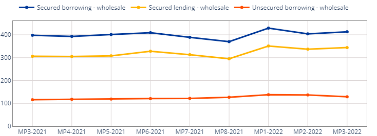 - Daily average borrowing turnover in the unsecured segment decreased from €137 billion in the second maintenance period of 2022 to €129 billion in the third maintenance period of 2022