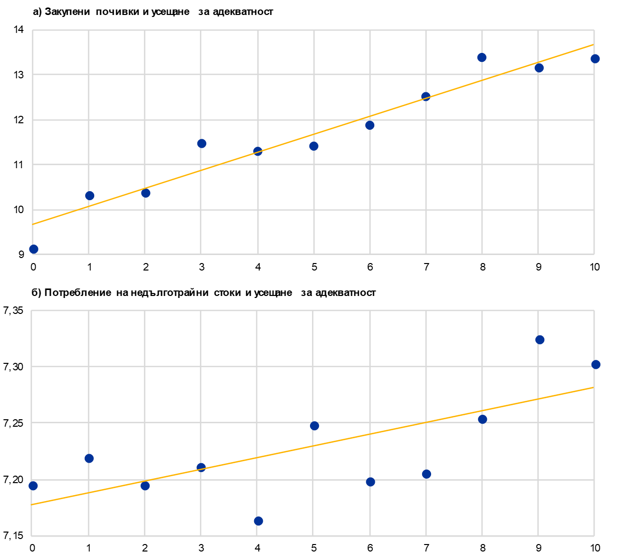 Виж Christelis, D., Georgarakos, D., Jappelli, T. and Kenny, G., “How has the COVID-19 crisis affected different households’ consumption in the euro area?”, Research Bulletin, No 84, ECB, 31 May 2021.